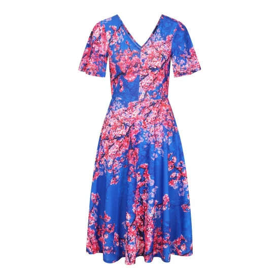 A flared midi length dress in a stunning print by HotSquash. This piece boasts a V-neck back and a flattering A-shape, making it the perfect dress up/dress down choice. It is made in London from supersoft, technology-enriched fabric that will keep you cool or warm, depending on the weather. If you’re searching for a distinctive day-to-night piece, look no further!