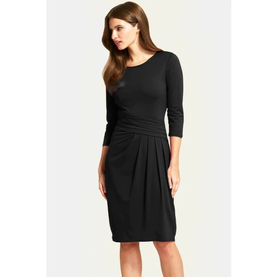 Flattering the waist and tummy, whilst remaining comfortable to wear, this knee-length dress is perfect for work and play. Made in London from crease-resistant, temperature-regulating fabric.