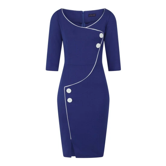 Take a step back in time with this 50s inspired wiggle dress. The stretch ponte fabric helps to sculpt the figure, giving the wearer a streamlined look. This dress is a fitted style, so if between sizes please size up.