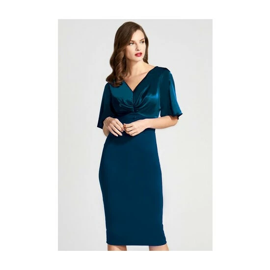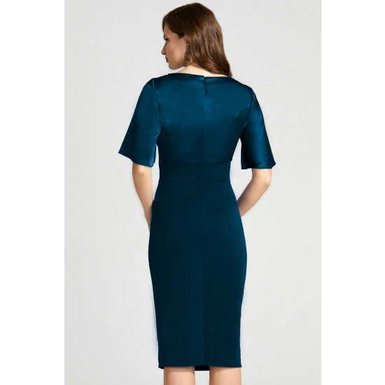 Sophisticated and glamorous, this teal coloured form-flattering dress will make you look and feel fabulous! Made from technology fabric, this dress is crease-resistant and temperature-regulating. It has a centre back zip.
