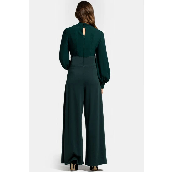 Elegance and sophistication are easily achieved in this easy-care jumpsuit. The wide-leg and blouson sleeve gives a flattering look that’s comfortable as it is stylish. Fitted at the waist, so if between sizes, size up.