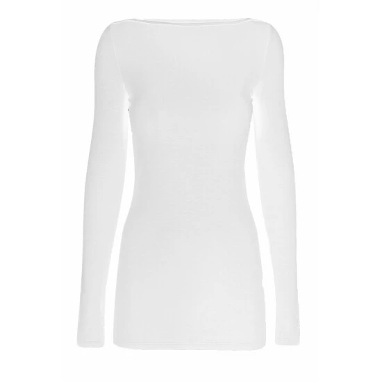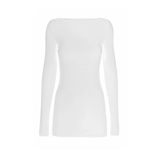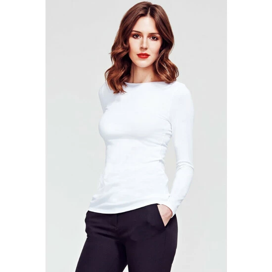 This white boat-neck top is perfect for understated chic. The technology fabric regulates body temperature, keeping you warm when it’s cold & cool when it’s warm. It’s also quick to dry & crease-resistant, keeping you looking & feeling your best all day long. Made in London.