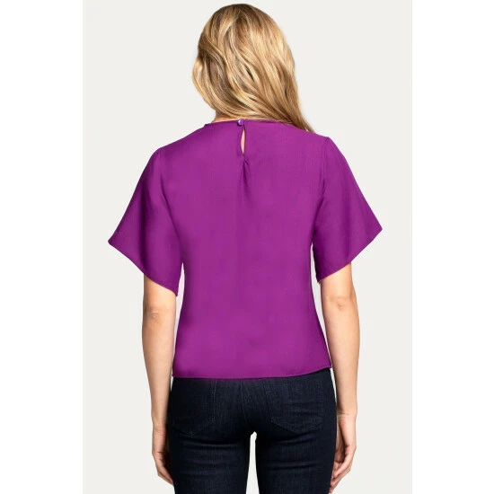 If your jeans and a nice top collection needs updating then look no further! The neck tie detail and contrast fabric on the sleeves makes this simple top elegant enough for the office or the party afterwards!