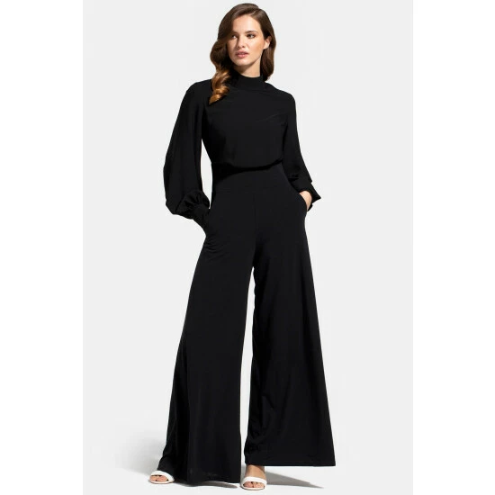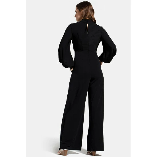 Elegance and sophistication are easily achieved in this easy-care jumpsuit. The wide-leg and blouson sleeve gives a flattering look that’s comfortable as it is stylish. Fitted at the waist, so if between sizes, size up.