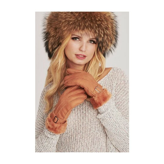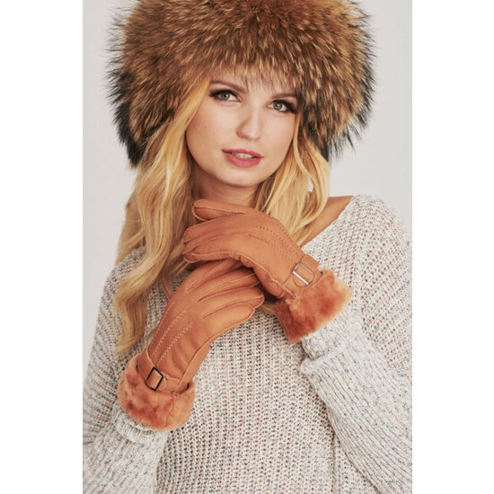 Genuine leather HotSquash women’s gloves with ornaments made of the highest quality sheepskins. Very warm and comfortable. Finished with natural fur on the inside. Delicate trim and a decorative belt with a buckle give them an original, classy look.