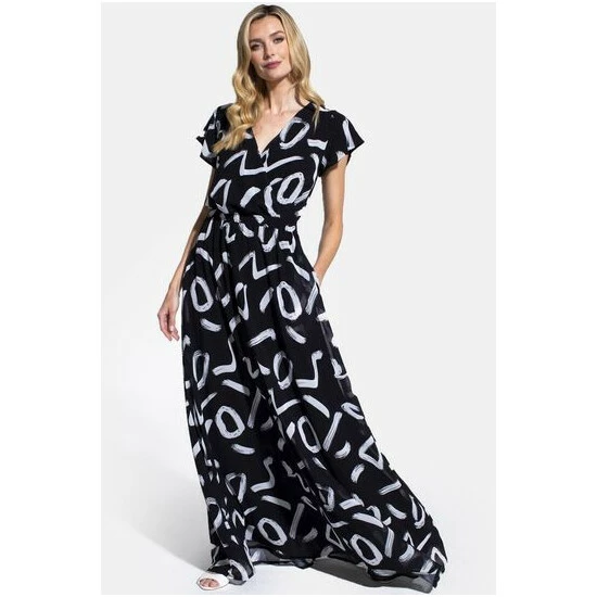 Hot Squash HotSquash Womens Black Chiffon Wrap-Top Maxi Dress