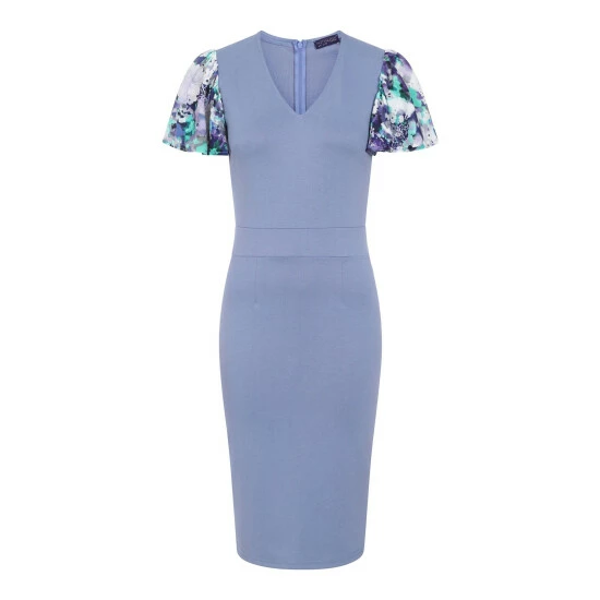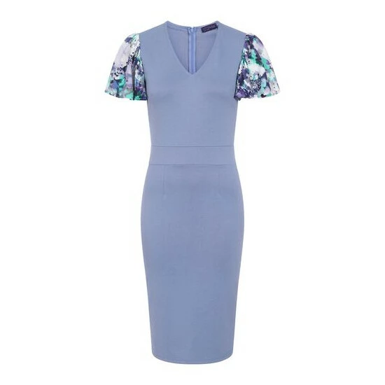 Crafted in a soft ponte jersey, this day-to-night Hot Squash dress falls elegantly to the knee. Designed to flatter, it comes with contrasting chiffon-sleeve detail, figure-hugging bodice, V-neckline and seaming throughout. Made in London from Hot Squash’s technology enriched fabric, this piece will make you feel cool and fresh all day, making it the ideal office to bar outfit.