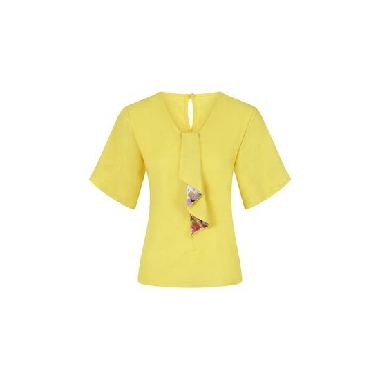 If your jeans and a nice top collection needs updating then look no further! The neck tie detail and contrast fabric on the sleeves makes this simple top elegant enough for the office or the party afterwards!