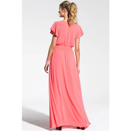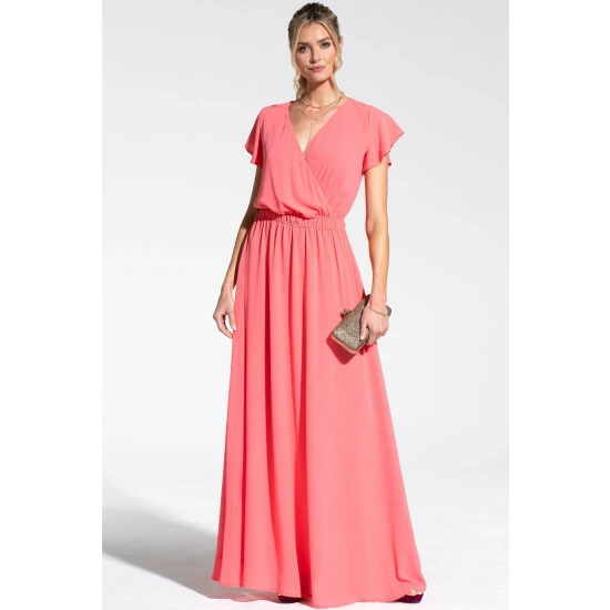 Hot Squash Orange Chiffon Wrap-Top Maxi Dress
