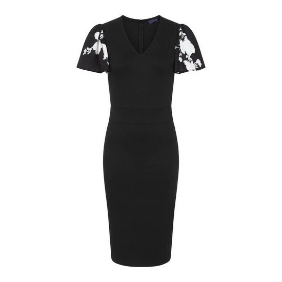 Crafted in a soft ponte jersey, this day-to-night Hot Squash dress falls elegantly to the knee. Designed to flatter, it comes with contrasting chiffon-sleeve detail, figure-hugging bodice, V-neckline and seaming throughout. Made in London from Hot Squash’s technology enriched fabric, this piece will make you feel cool and fresh all day, making it the ideal office to bar outfit.