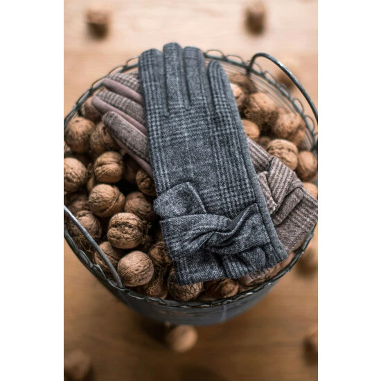 Hot Squash Womens Grey Checked Gloves