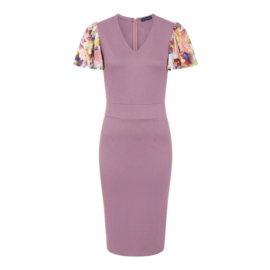 Crafted in a soft ponte jersey, this day-to-night Hot Squash dress falls elegantly to the knee. Designed to flatter, it comes with contrasting chiffon-sleeve detail, figure-hugging bodice, V-neckline and seaming throughout. Made in London from Hot Squash’s technology enriched fabric, this piece will make you feel cool and fresh all day, making it the ideal office to bar outfit.